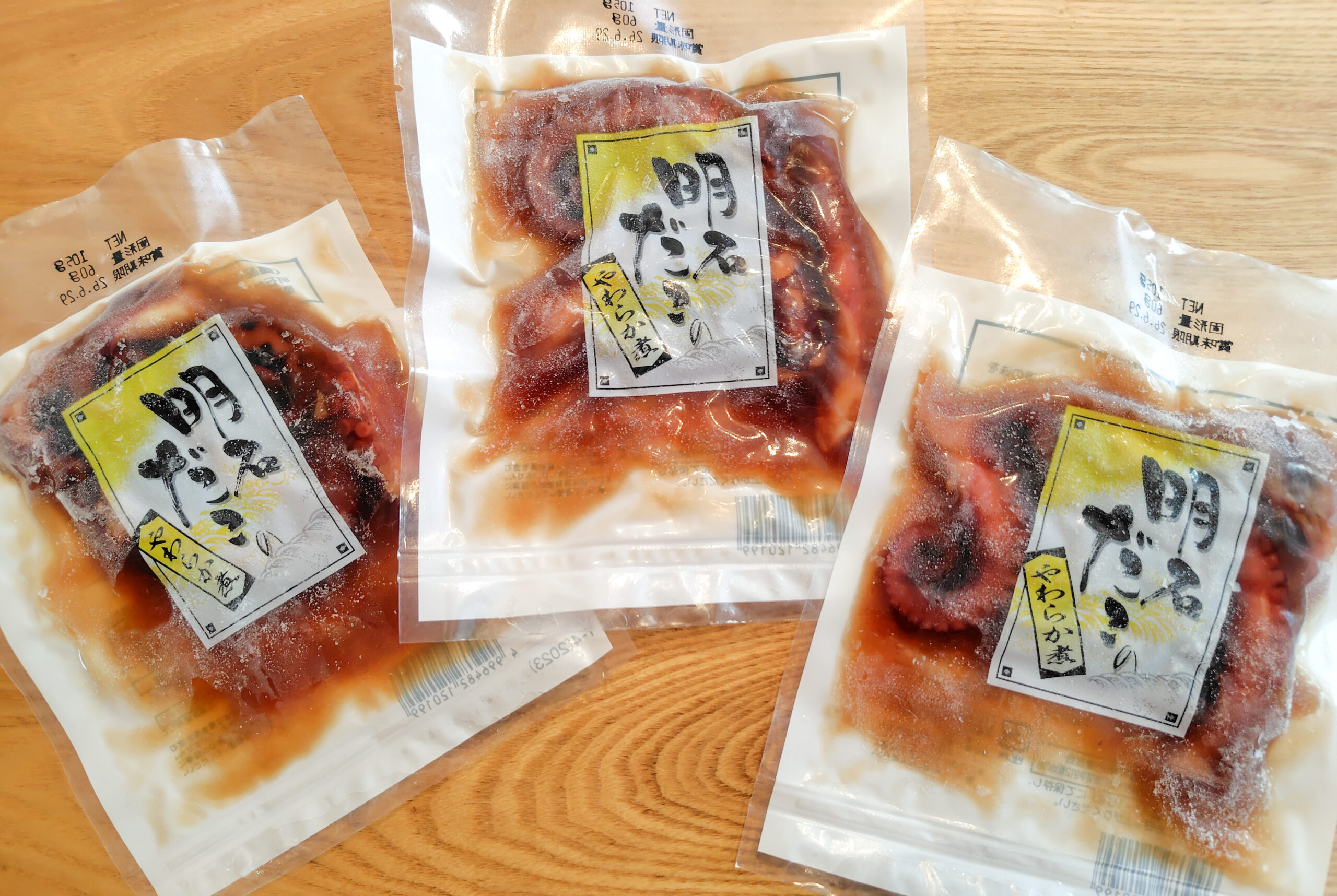 明石だこやわらか煮 固形量60g×3P 箱入 明石だこやわらか煮 固形量60g×3P 箱入 (8A120604) 人気No.1商品です。真空調理製法によって、ぷりぷりの食感が自慢の「明石だこ」に、驚きの柔らかさを加えることに成功しました。お子様からご年配の方まで、「明石だこ」のうまみを存分にお楽しみいただけます。化粧箱入りなので、贈答用にもご利用いただけます。 【内容】 明石だこやわらか煮NET105g (固形量60g)×3P(化粧箱入) 生産地:明石・播磨灘海域 賞味期限:冷凍365日 配送タイプ:冷凍(ヤマト運輸) 明石だこやわらか煮 固形量60g×3P 箱入 在庫状態 : 在庫有り ¥3,320(税別) ( 税込¥3,586 ) 数量セット